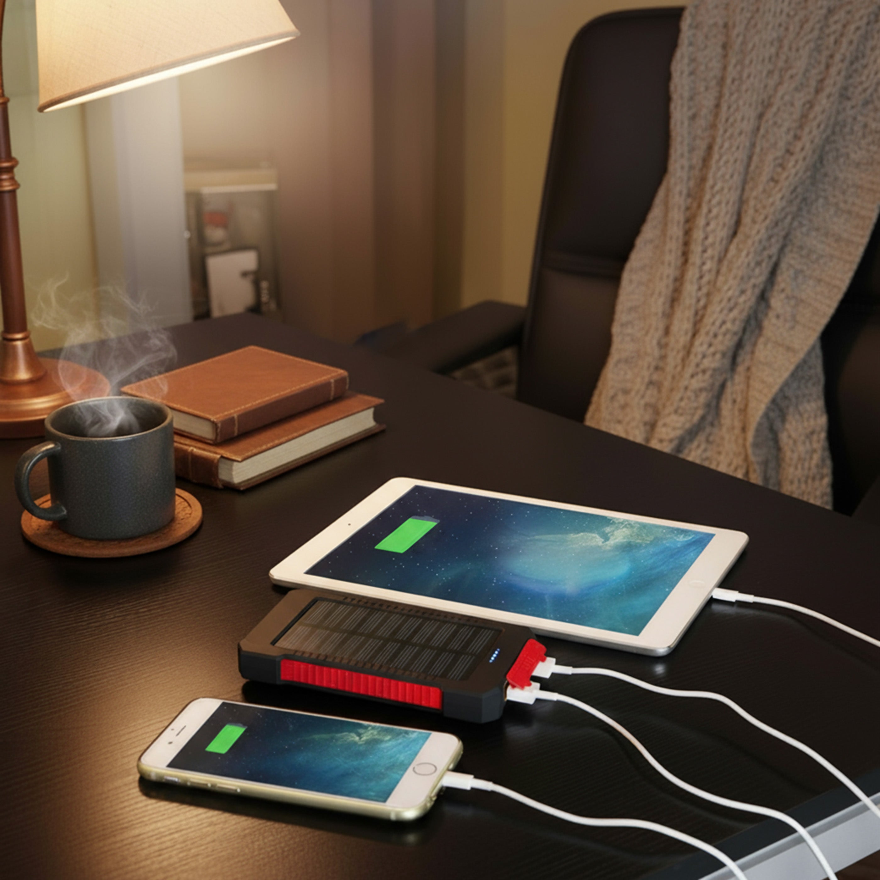 The SolaBank Wireless Charging Powerbank lets you charge multiple devices at the same time. Drop your phone onto the built-in wireless pad for instant charging, or plug into the dual USB ports for even faster power. With room to charge multiple devices, you’ll never have to choose between powering your phone, earbuds, or smartwatch again.