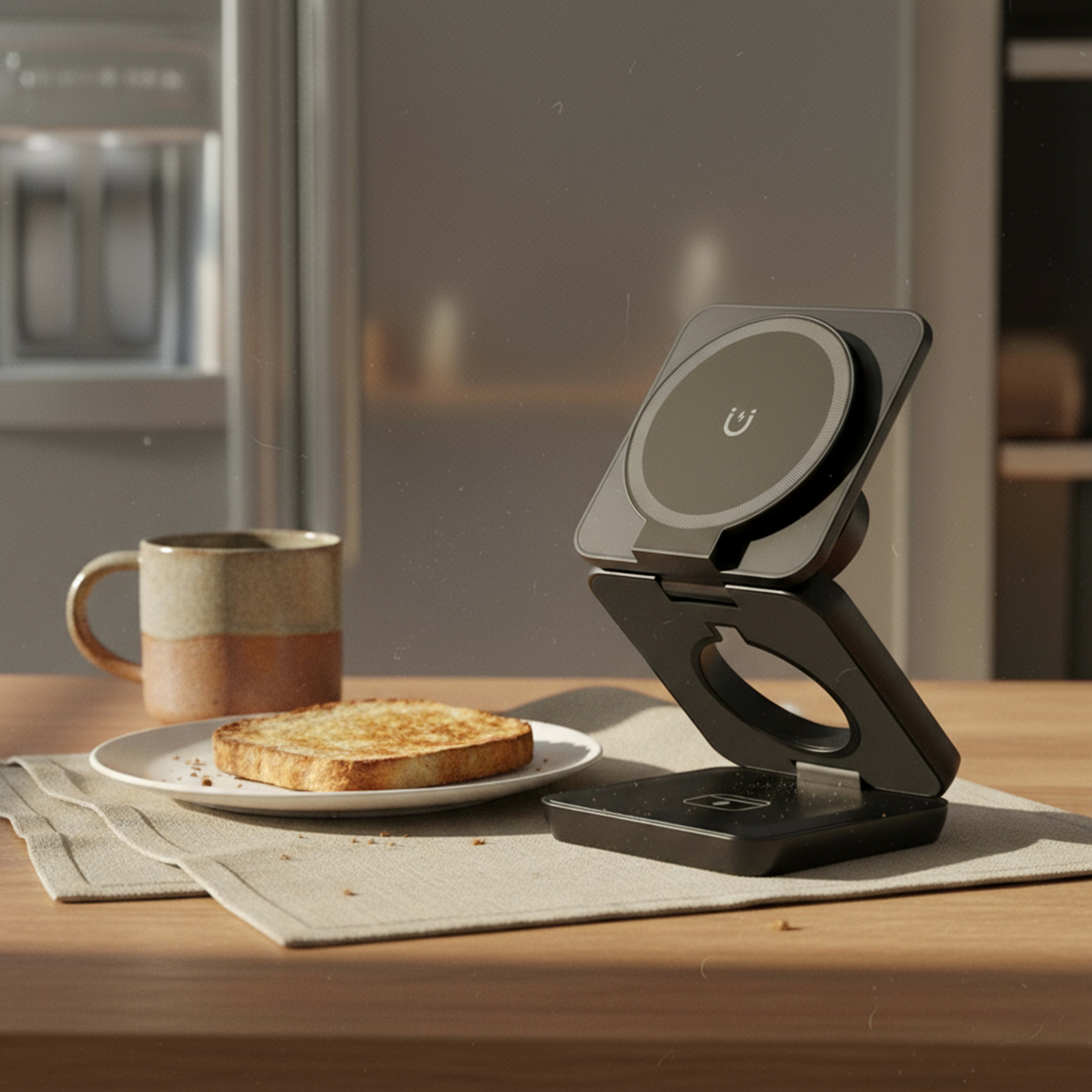 It locks your phone in place with MagSafe, switches seamlessly between portrait and landscape, and folds flat for effortless travel.