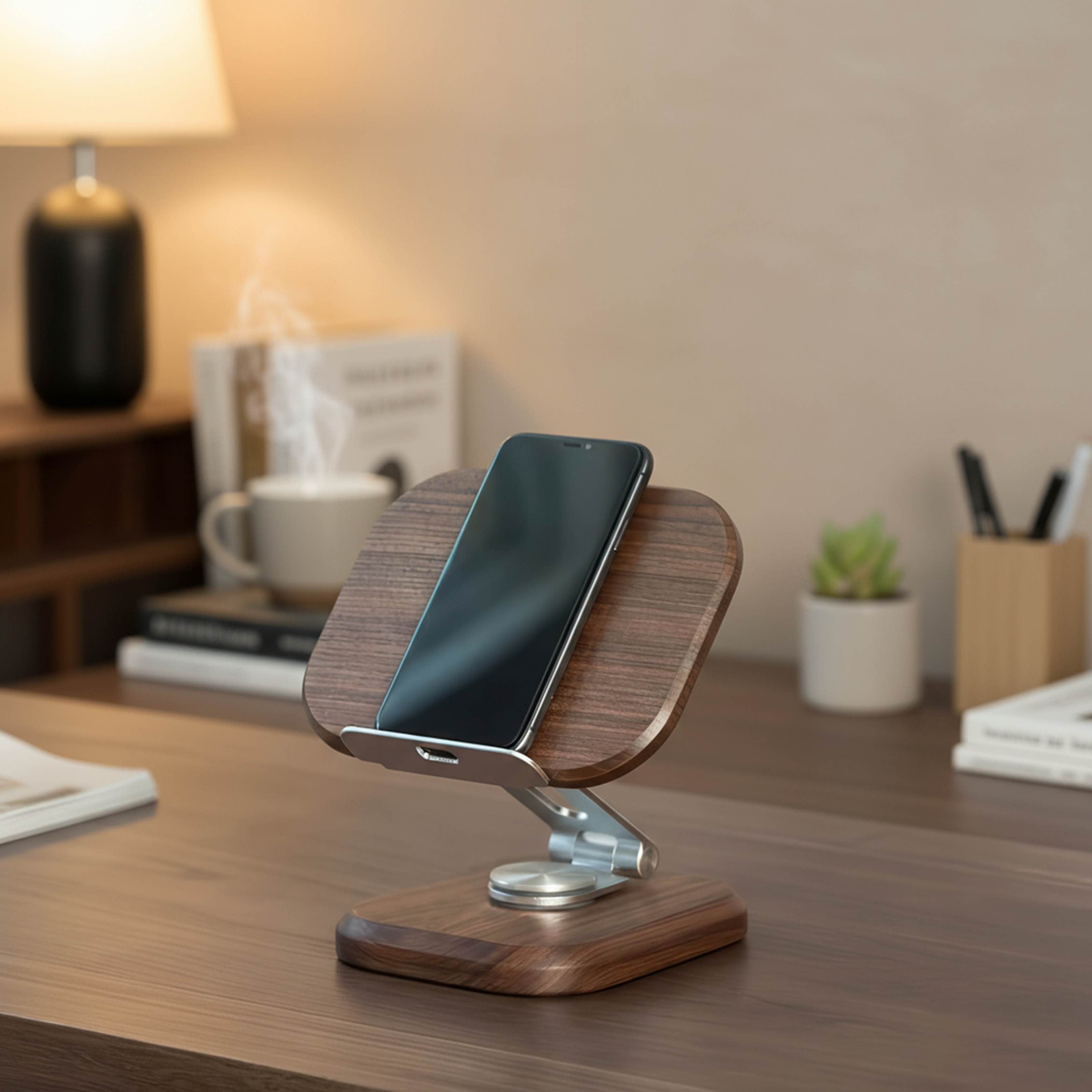 That’s why we designed the Wooden Phone & Tablet Stand, a solid walnut and aluminum holder that blends strength with timeless style. Not just a stand, but one you’ll be proud to keep on display.